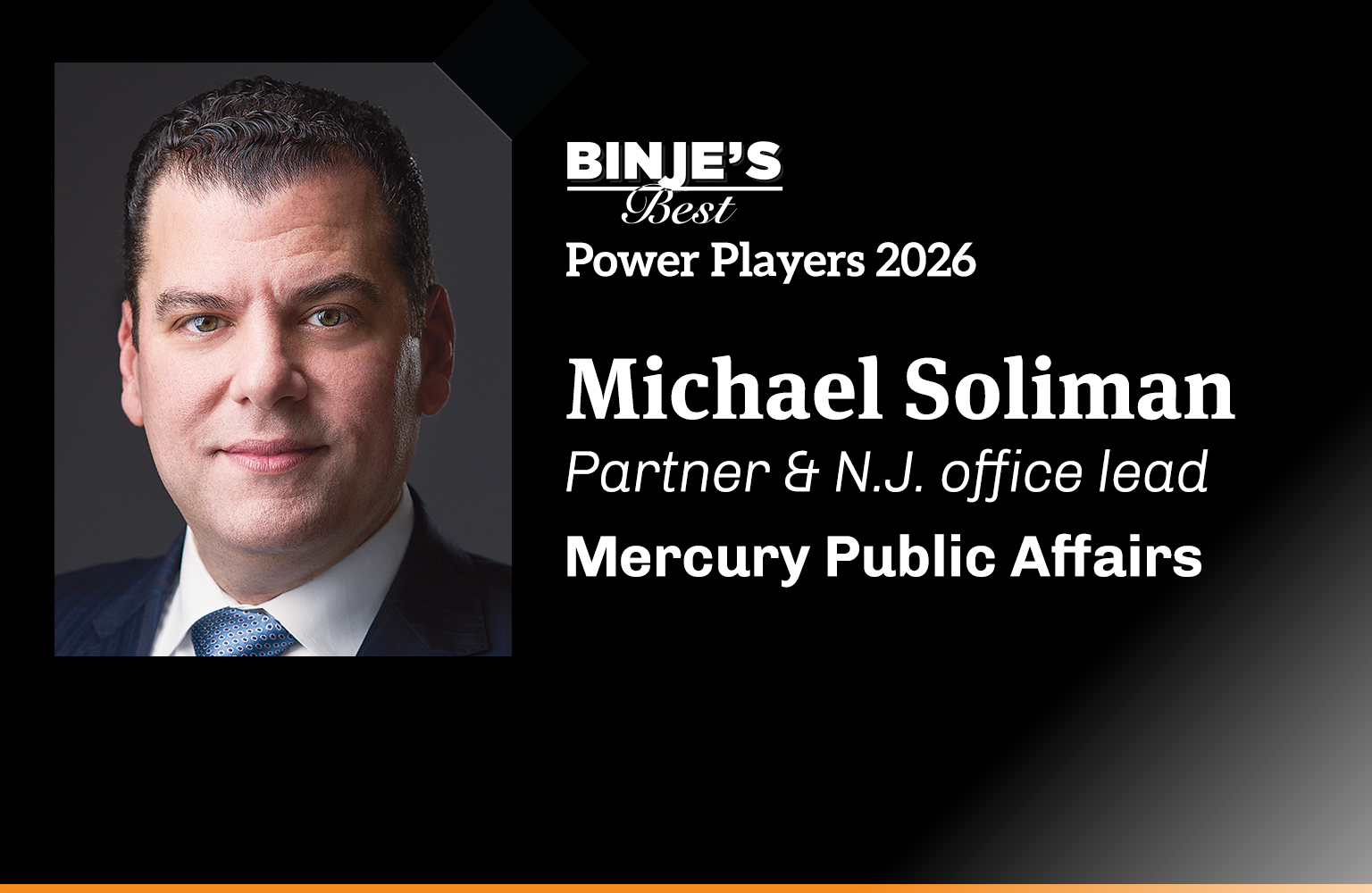 Michael Soliman BINJE Power Players 2026MIchael Soliman is a Partner and N.J. Office Lead for Mercury Public Affairs and an instructor in the graduate Public Policy program